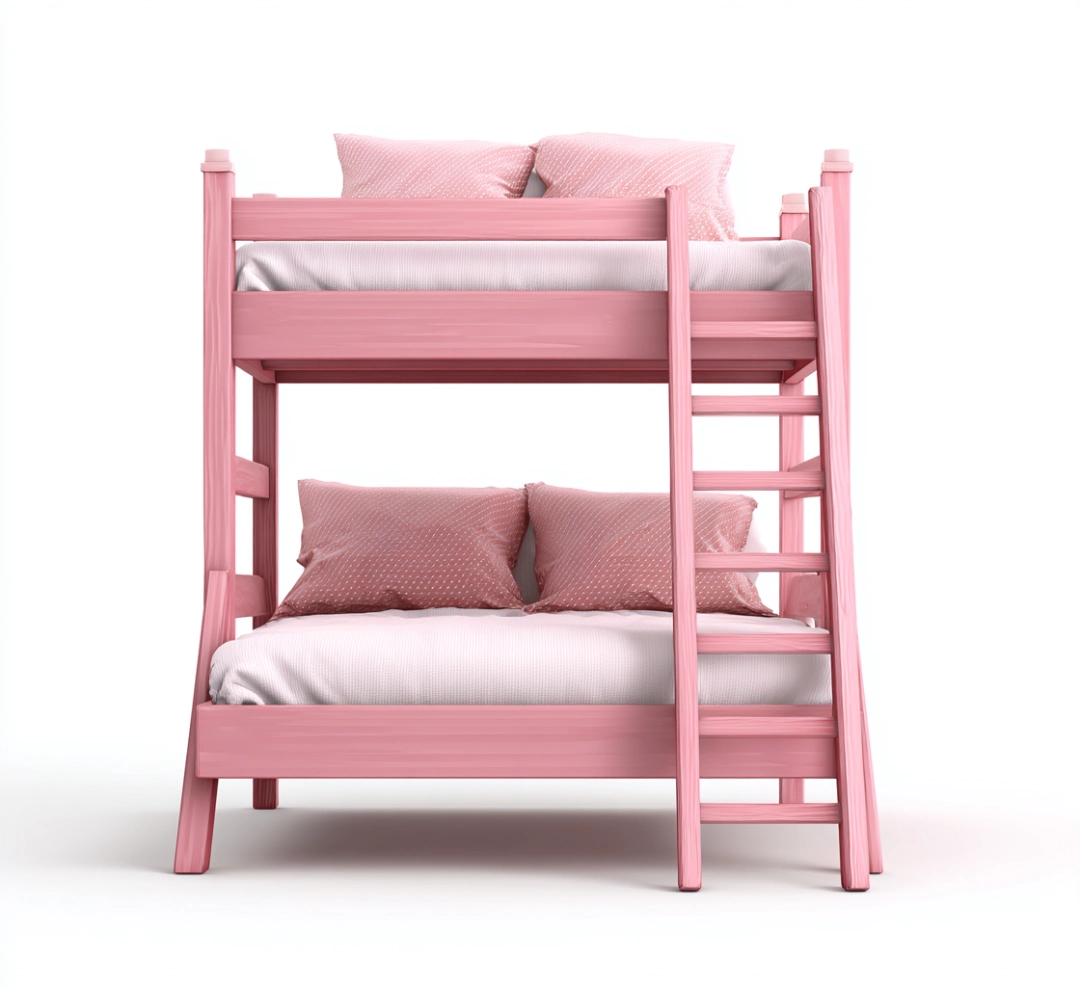 Ces lits superposés en bois rose offrent une solution de couchage moderne et fonctionnelle, idéale pour optimiser l'espace tout en ajoutant une touche décorative à la chambre.